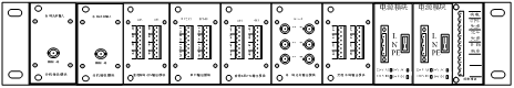 每臺機(jī)箱后面板配有2塊輸入模塊,2塊電源模塊,5塊輸出模塊和1個(gè)告警模塊;