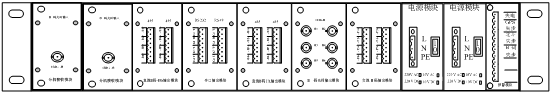 每臺(tái)機(jī)箱后面板配有2塊輸入模塊,2塊電源模塊,5塊輸出模塊和1個(gè)告警模塊;