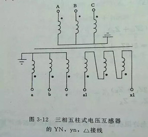 從上圖中可以看出電壓互感器一次電流從一次線圈的極性端流入,這個(gè)不是刻意做的,而是一次必須要這么接線,這是一次安裝的工藝所必須的,那么二次線圈的引出線就必須從極性端引出,非極性端結(jié)成N線在主控室一點(diǎn)接地,這樣就能保證電壓互感器UA、UB、UC的正極性。