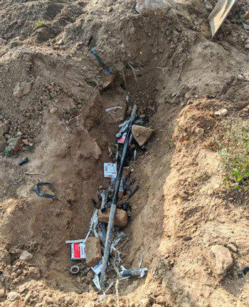 2、使用高壓發(fā)生器打壓進行放電定點,使用輪距儀進行距離測量在施工場區(qū)找到故障點,如圖所示